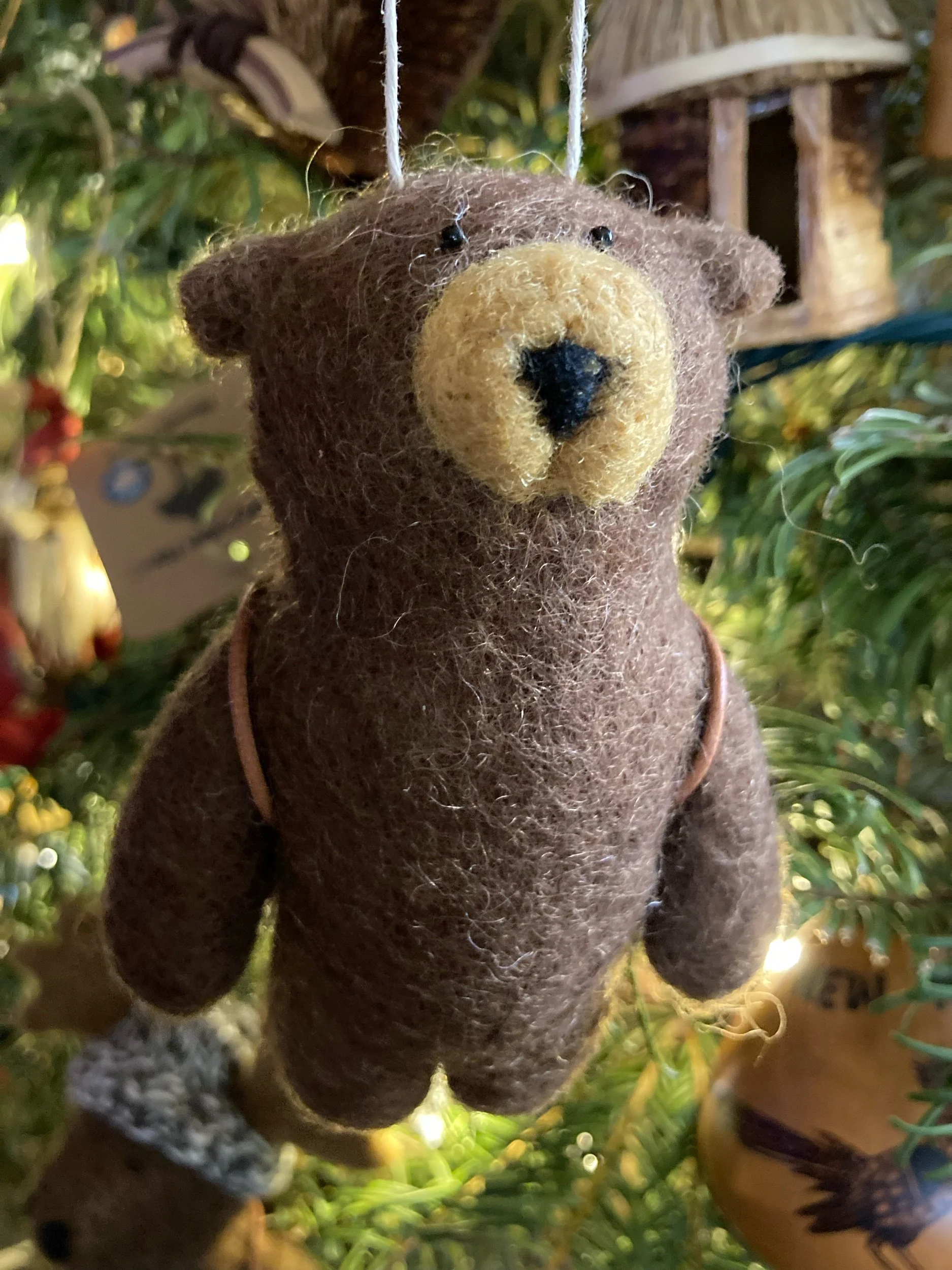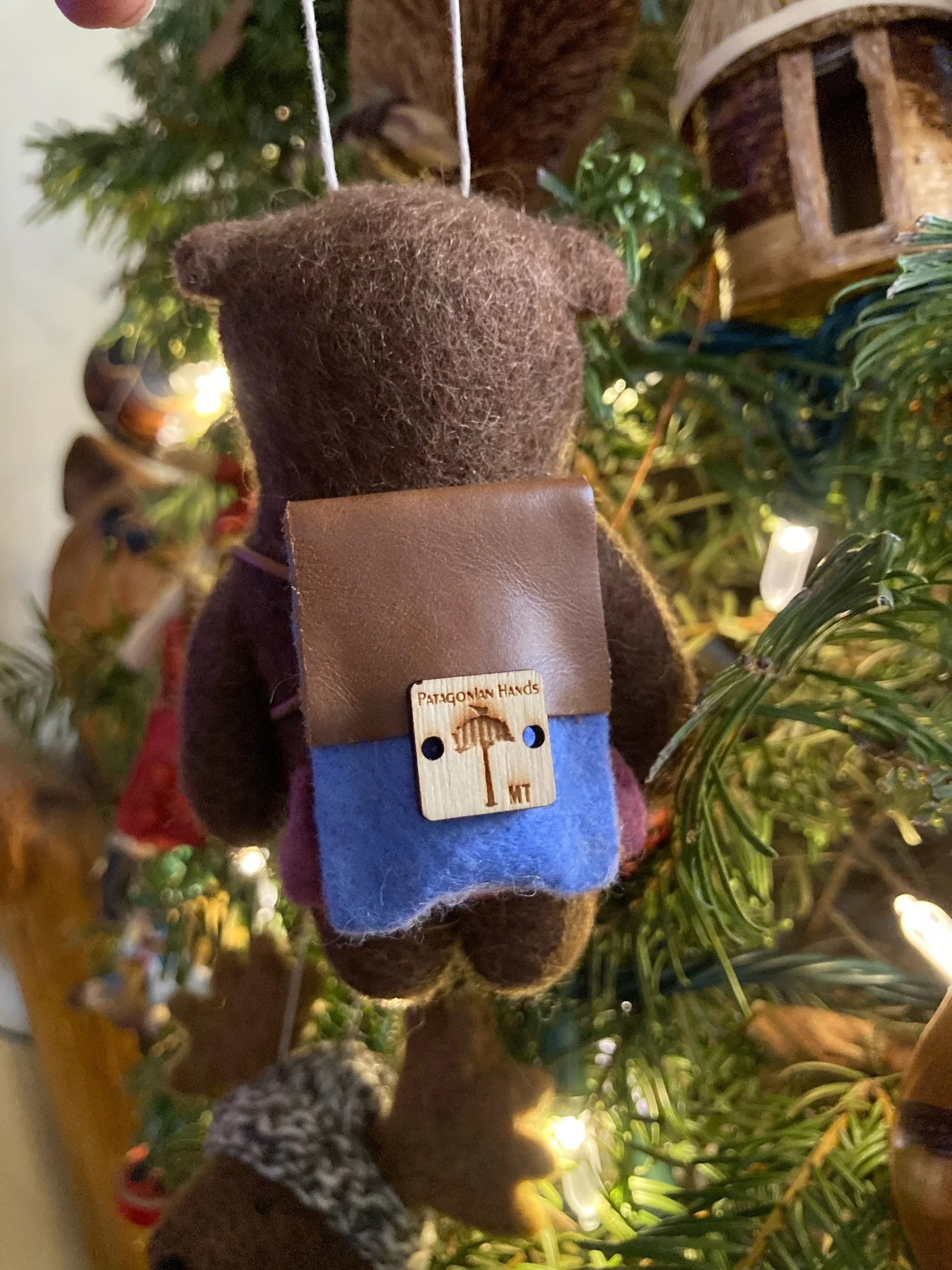Shop › Discovery Bear Ornament Image 1 of 2 Image 2 of 2 Discovery Bear Ornament $40.00 Needle felted ornament with a backpack made with Merino wool and leather. Purchase Added! Needle felted ornament with a backpack made with Merino wool and leather.