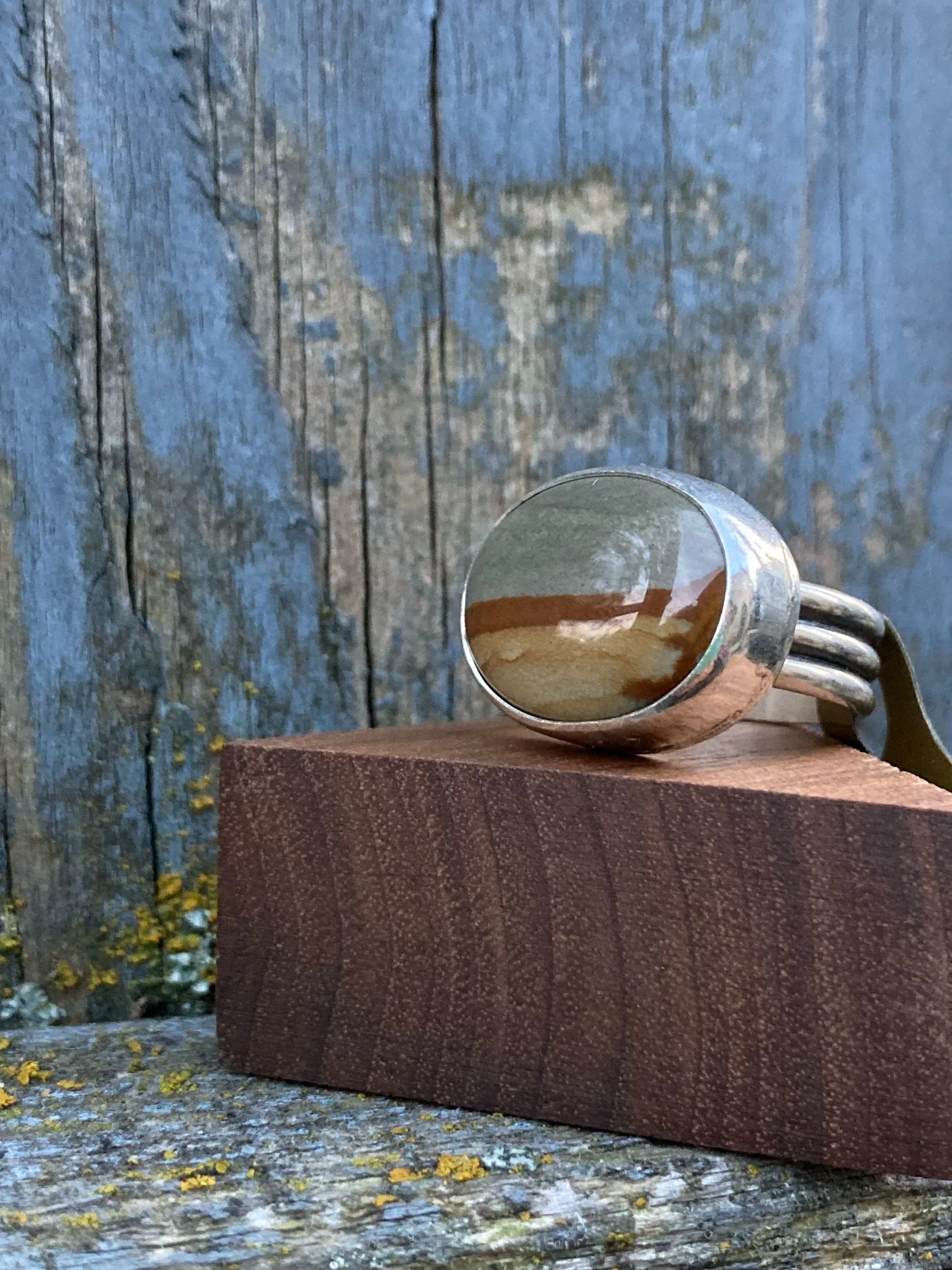 Shop › Jasper Ring | Size 7 Image 1 of 5 Image 2 of 5 Image 3 of 5 Image 4 of 5 Image 5 of 5 Jasper Ring | Size 7 $150.00 Sterling silver ring with a Jasper cabochon mined in the Owyhee Mountains in Oregon.Size 7 Purchase Added! Sterling silver ring with a Jasper cabochon mined in the Owyhee Mountains in Oregon.Size 7