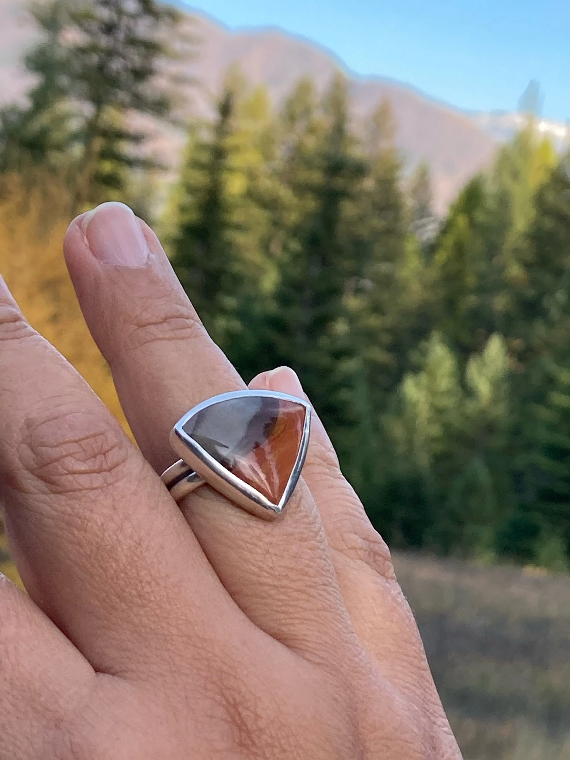 Shop › Jasper Ring | Size 10 Image 1 of 2 Image 2 of 2 Jasper Ring | Size 10 $185.00 Sterling silver ring with a Polychrome Jasper.Size 10 Purchase Added! Sterling silver ring with a Polychrome Jasper.Size 10