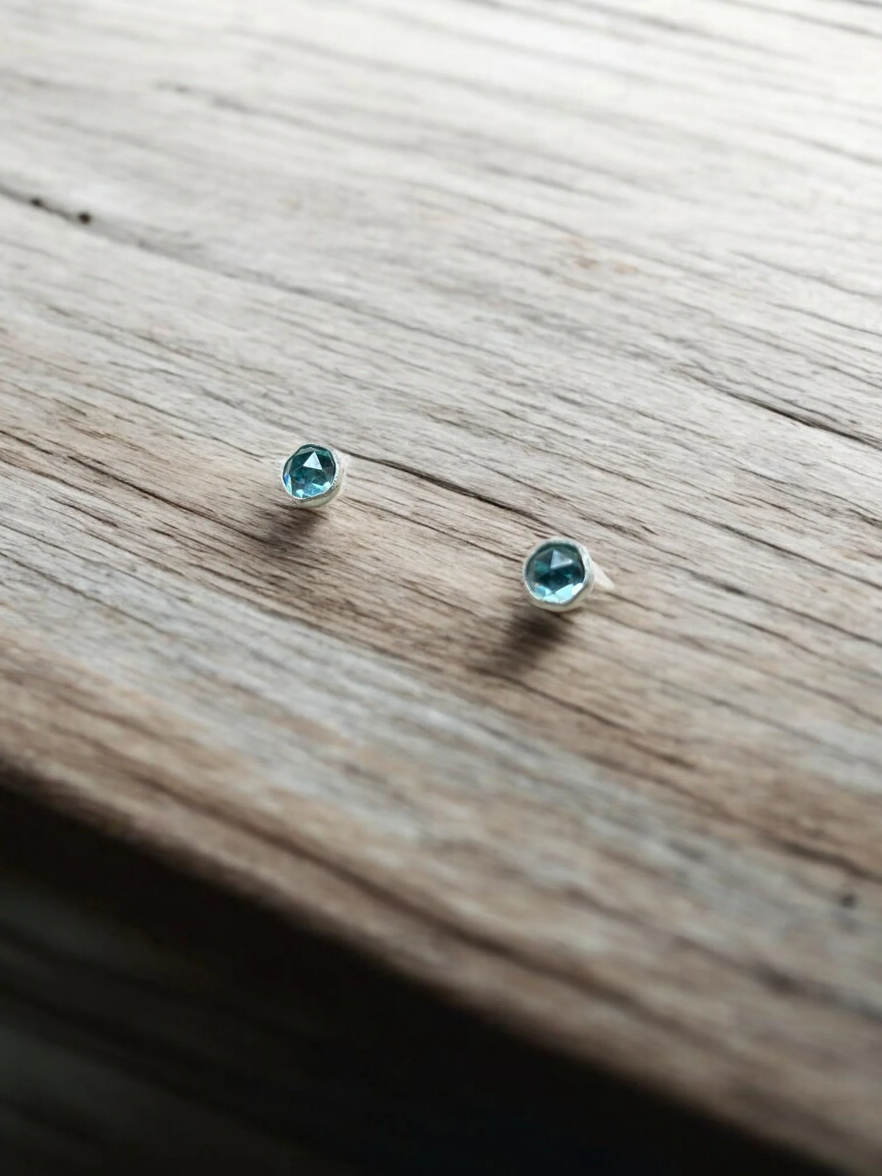 Small Montana sapphire stud earrings made with sterling silver.